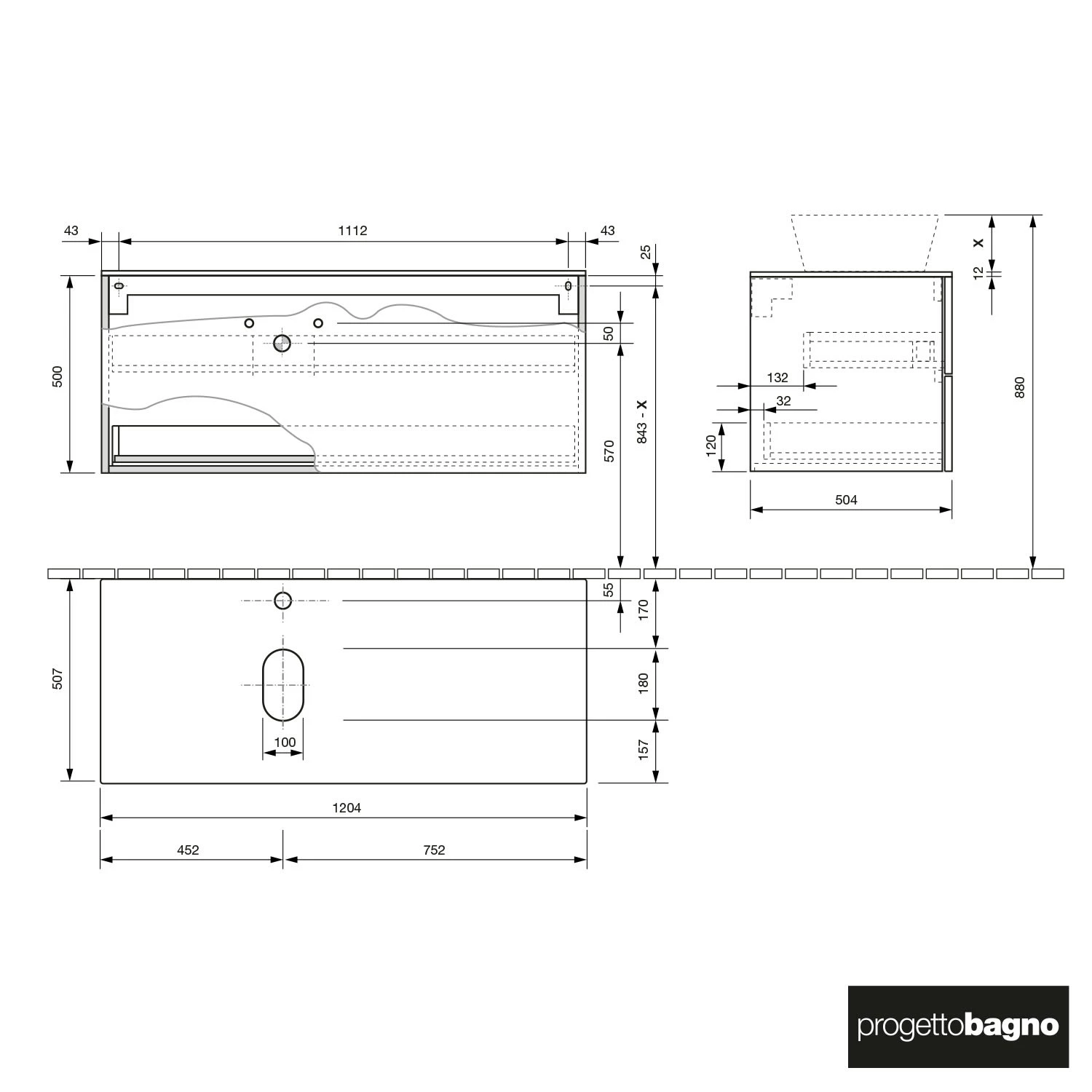 progettobagno Elba Modular Glass, Ausführung links Waschtischkonsole 120 cm mit Hahnlochbohrung