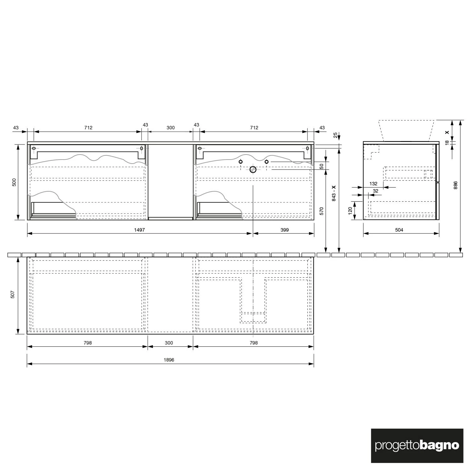 - Waschtischunterschrank mit 4 Auszügen und Siphonausschnitt