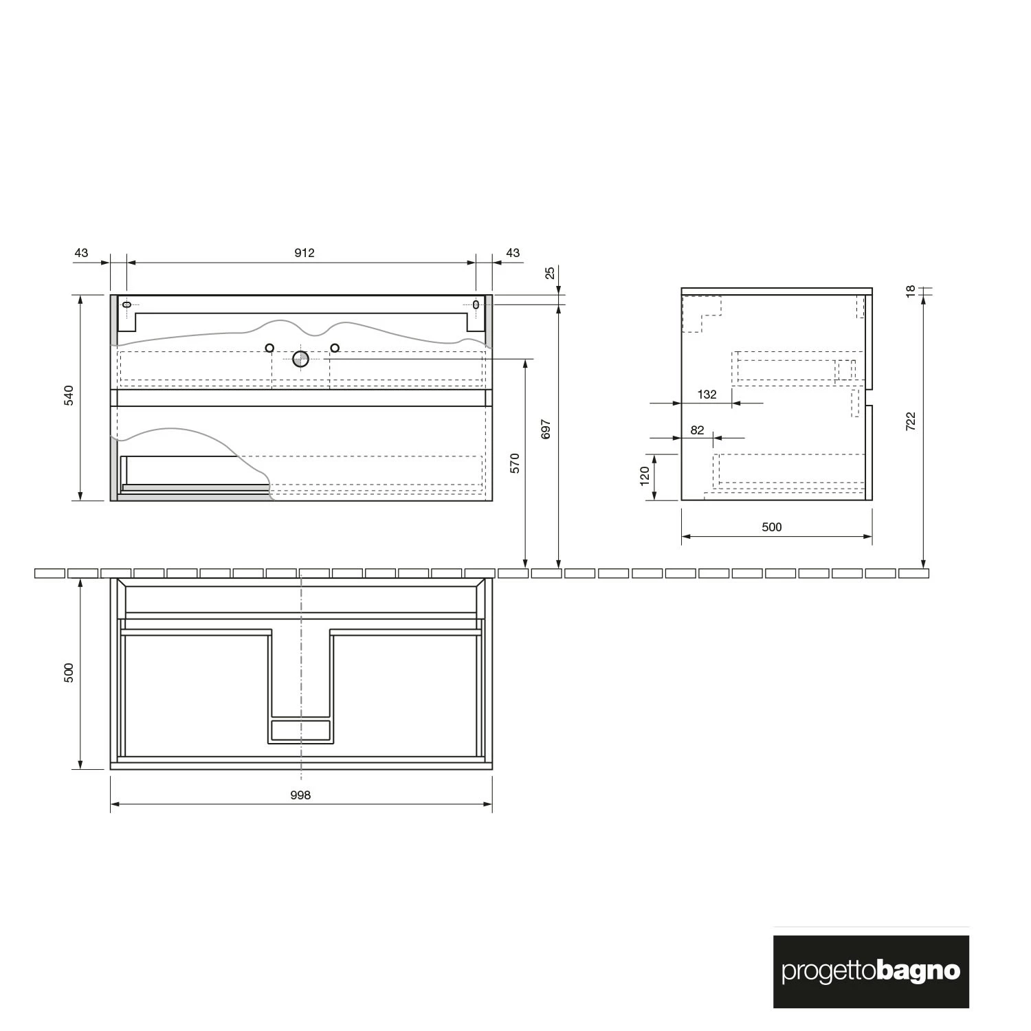 - Waschtischunterschrank mit 2 Auszüge mit Siphonausschnitt
