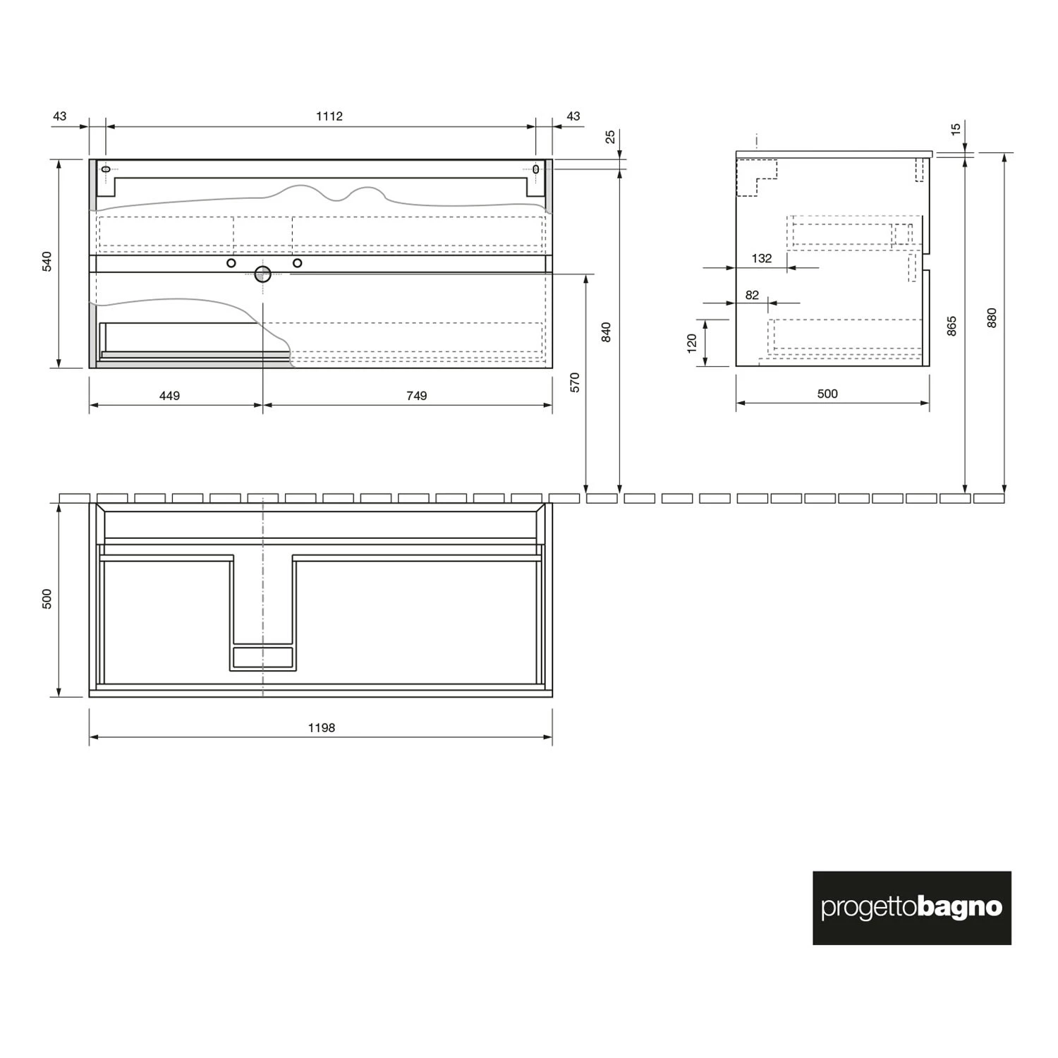 progettobagno Evo 54 Walnuss Vision Waschtischkonsole 120 cm, Ausführung links