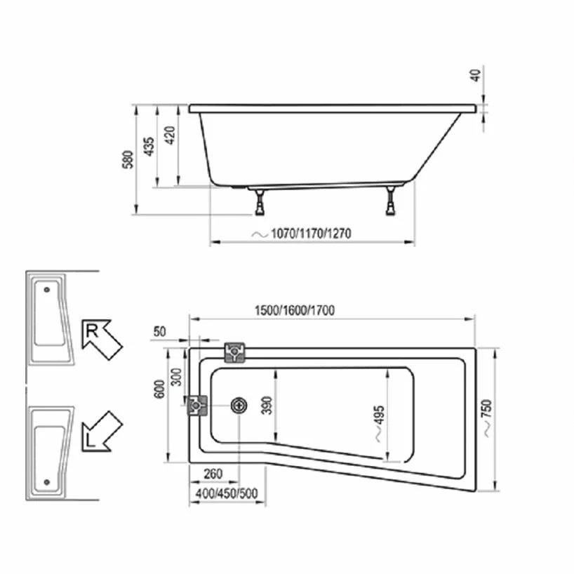 RAVAK Be Happy II asymmetrische Badewanne 160 x 75 cm, rechts