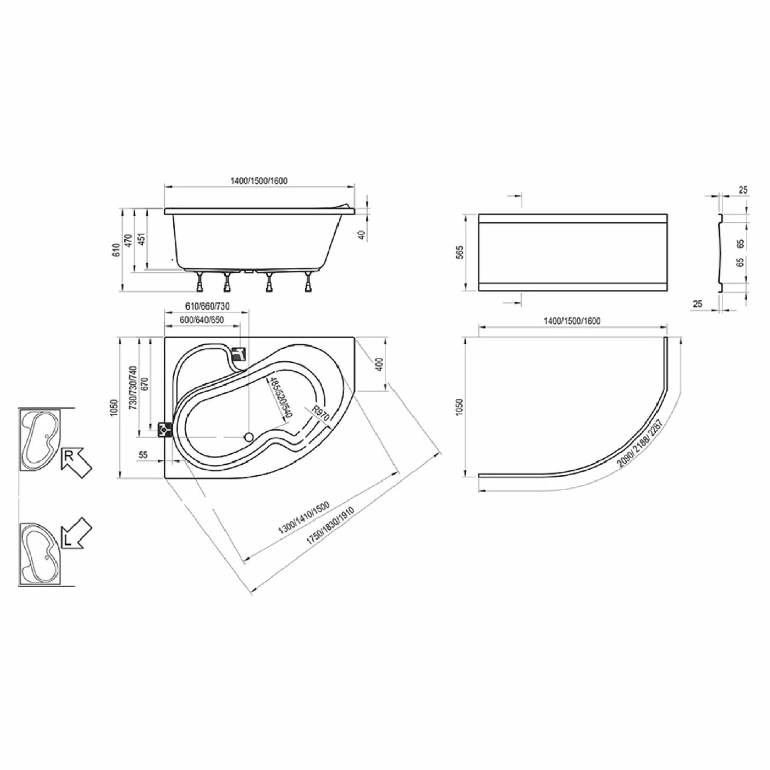 RAVAK Rosa I asymmetrische Badewanne 150 x 105 cm, rechts