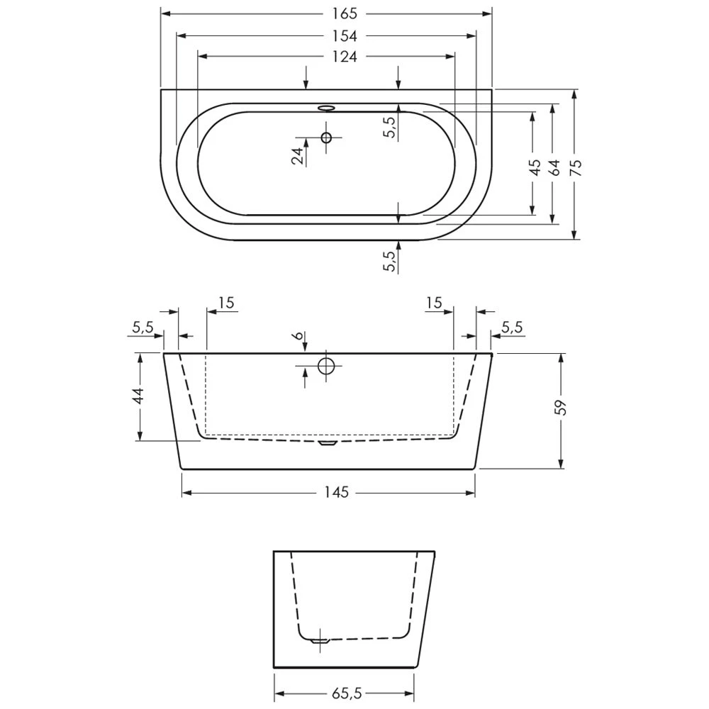 Repabad Livorno Oval F Badewanne Wand 165 x 75 cm