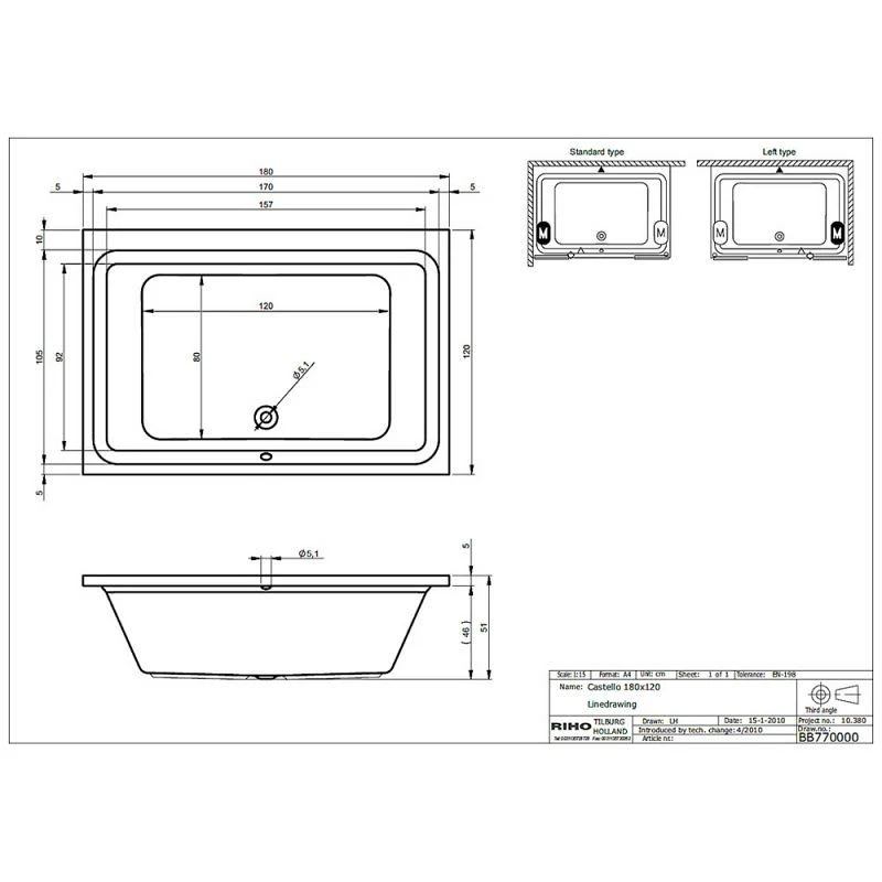Riho Castello Rechteckbadewanne 180 x 120 cm