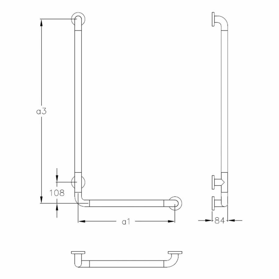 Der Haltegriff wird maßgefertigt. Bitte geben Sie in der Bestellung die beiden gewünschten Längen zwischen 30 – 90 cm an.
