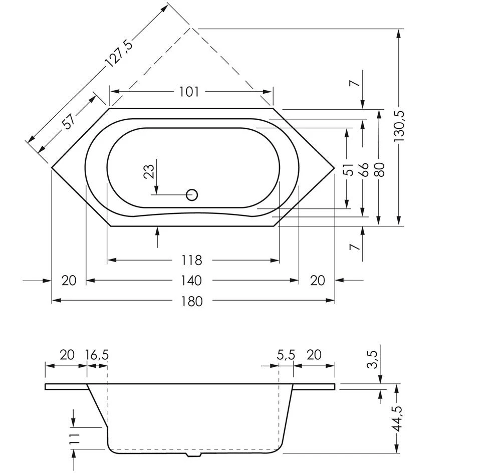 Steinkamp Life Sechseckbadewanne 180 x 80 cm