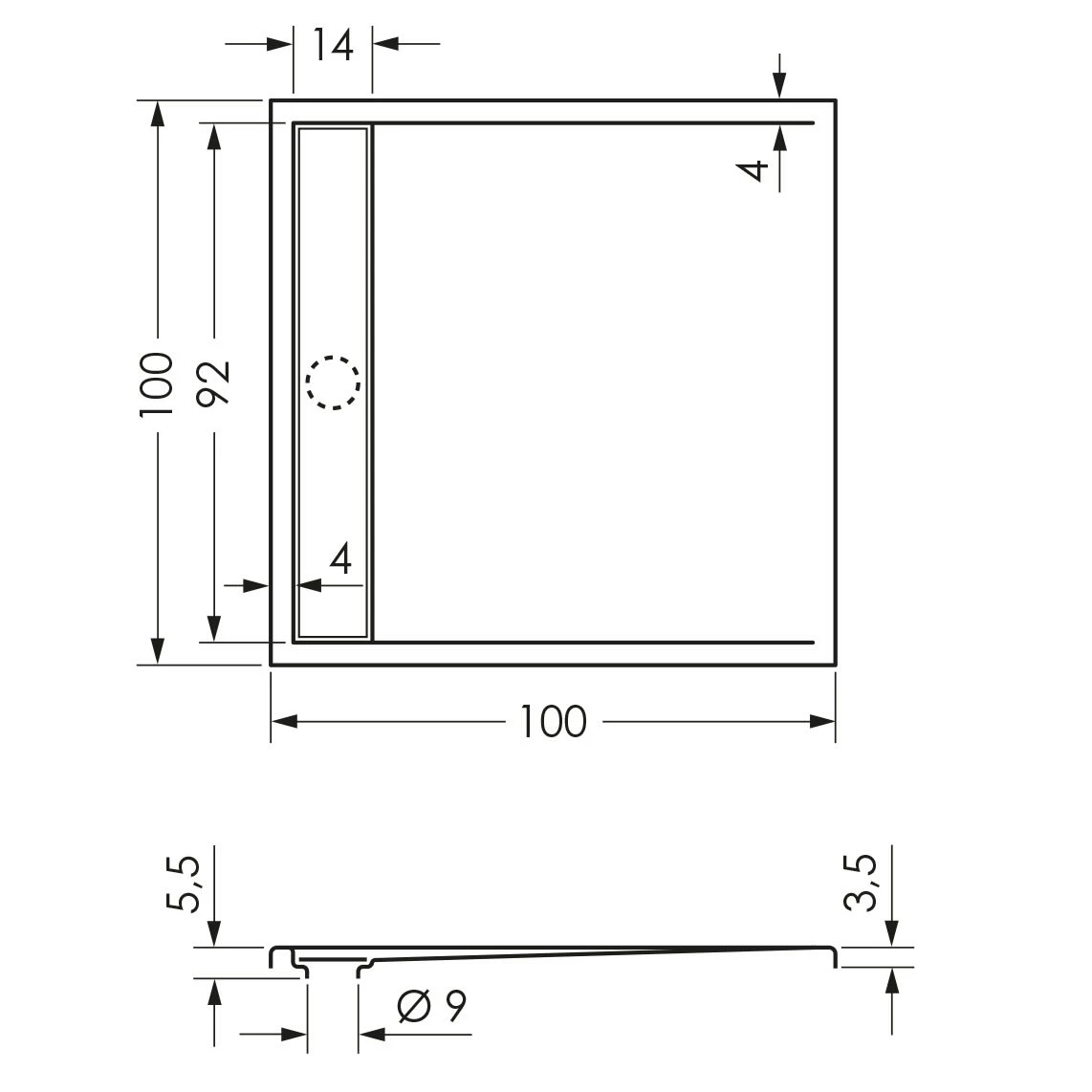 - Breite Ablaufrinne: 14 cm
