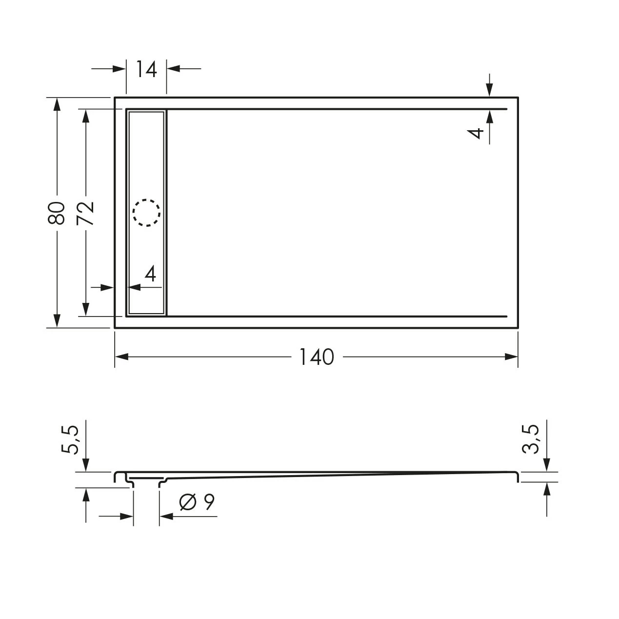Steinkamp Living Duschwanne 140 x 80 cm mit Ablaufrinne, superflach