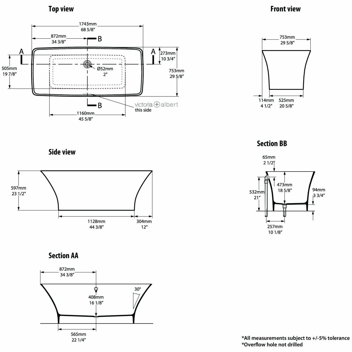 - Aufgrund des Designs des Randes können in diese Wanne keine Löcher gebohrt werden.