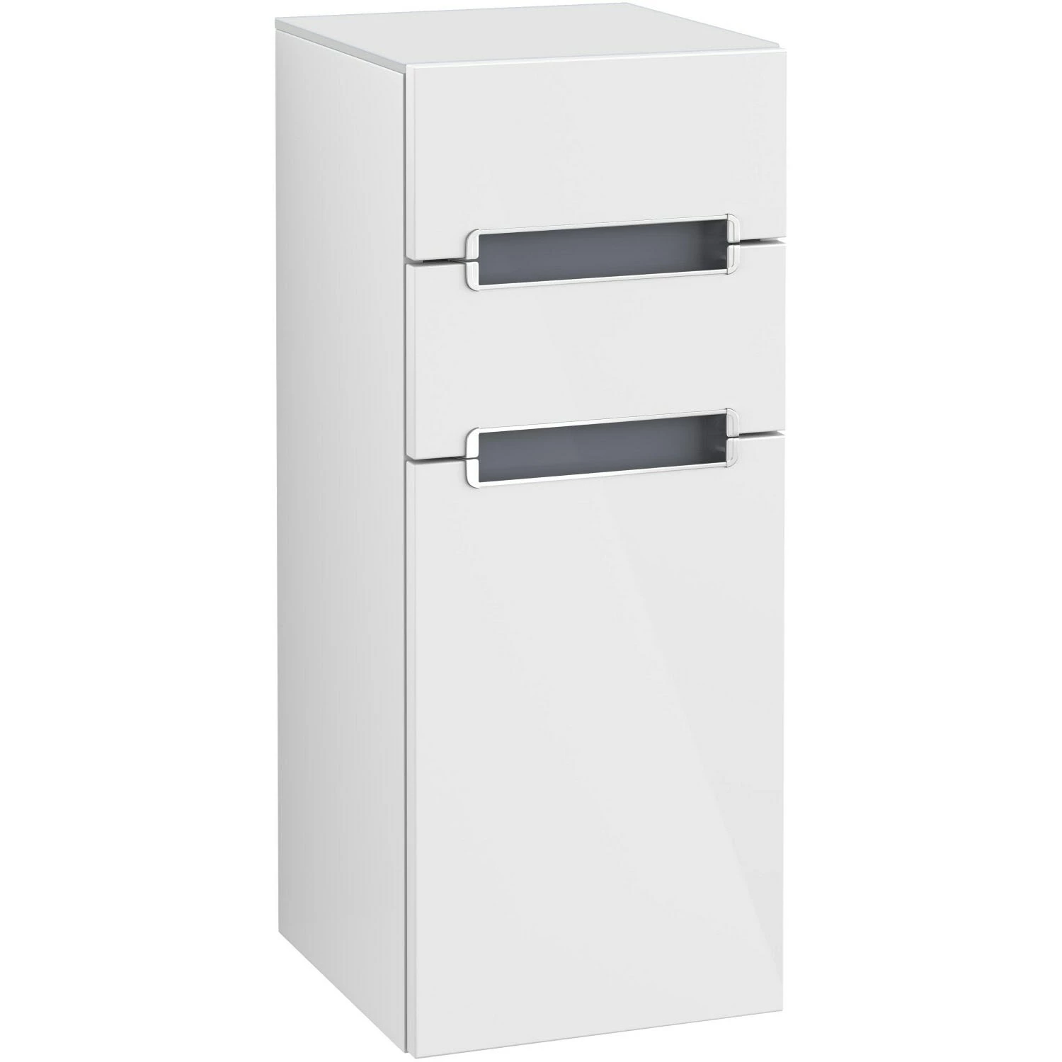 Villeroy & Boch Subway 2.0 Seitenschrank 35,4 cm Anschlag links, Abdeckplatte Glas weiß, Griffe silberfarbig matt