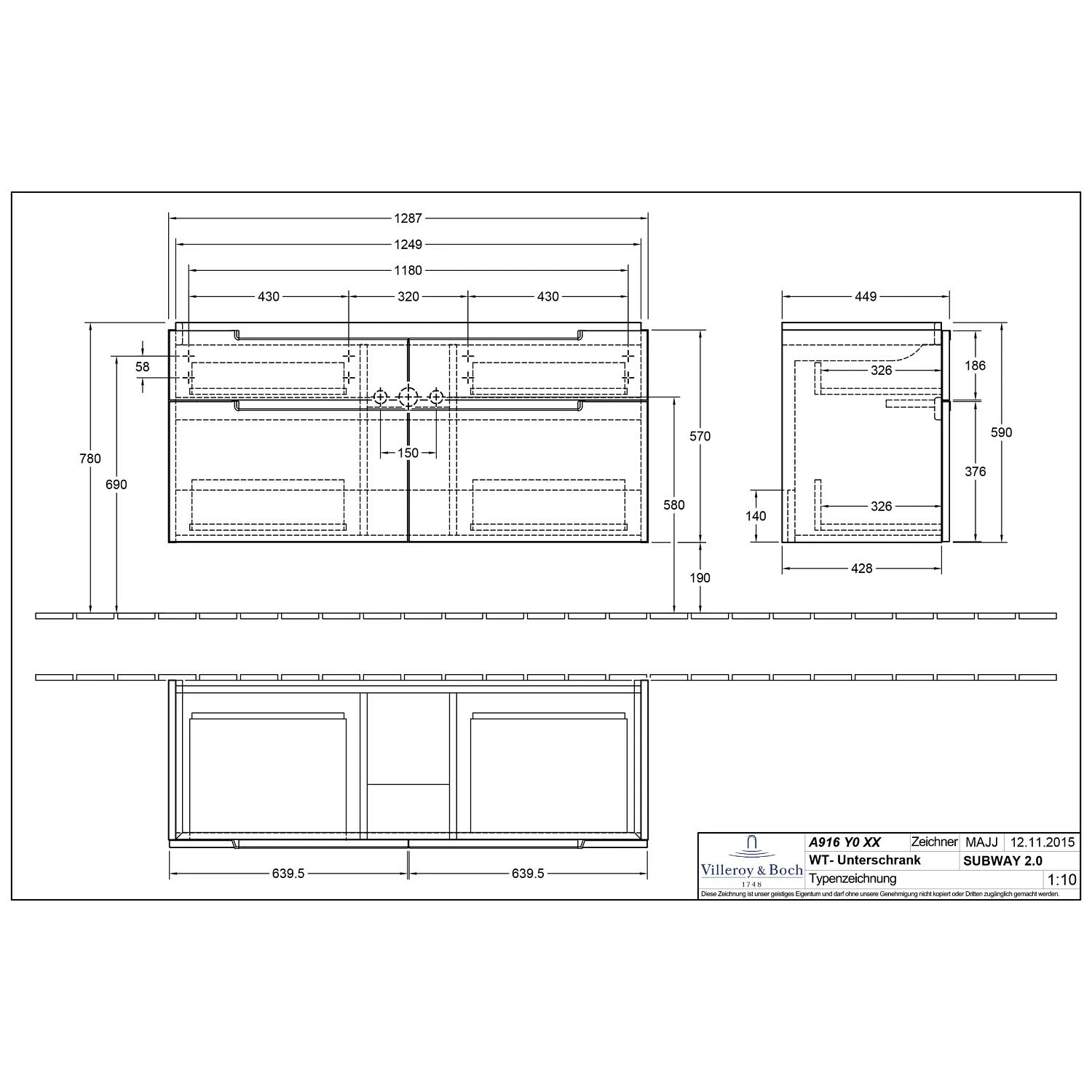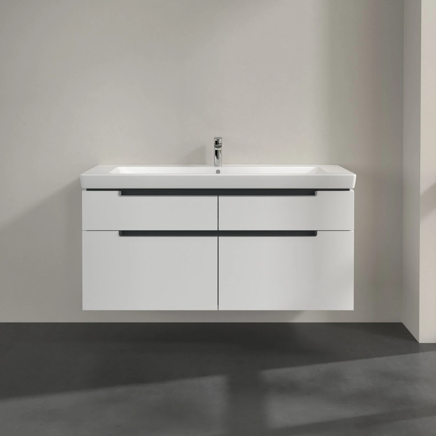 Villeroy & Boch Subway 2.0 Waschtischunterschrank XXL 128,7 cm, Griffe chromfarbig glänzend, 4 Auszüge