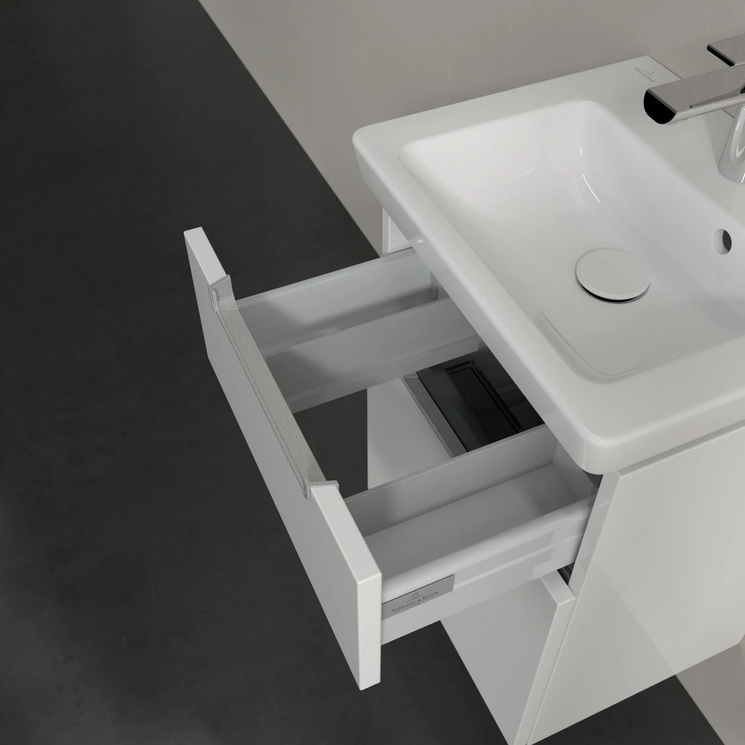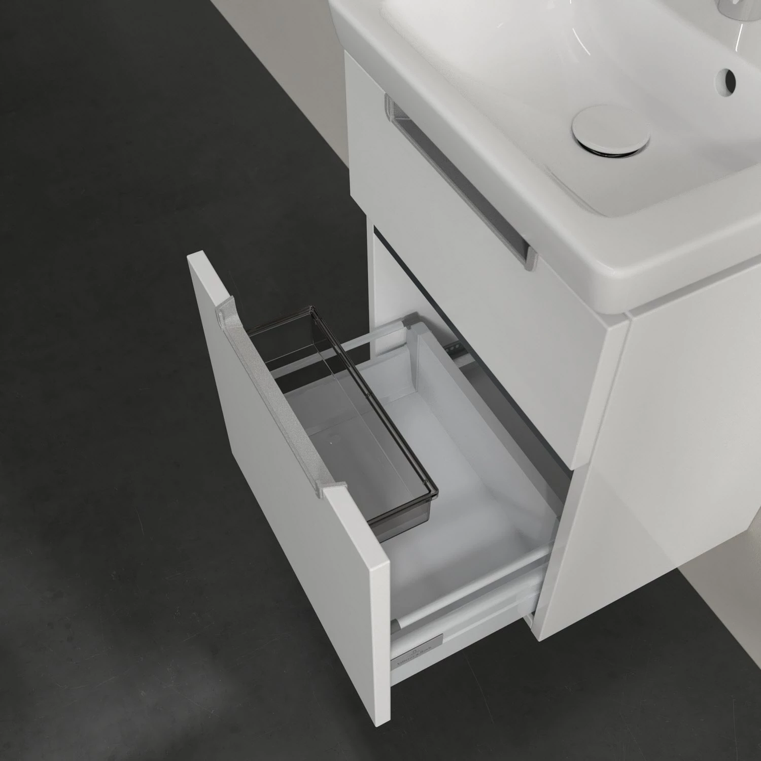 Villeroy & Boch Subway 2.0 Waschtischunterschrank XXL 44 cm, Griffe silberfarbig matt, 2 Auszüge