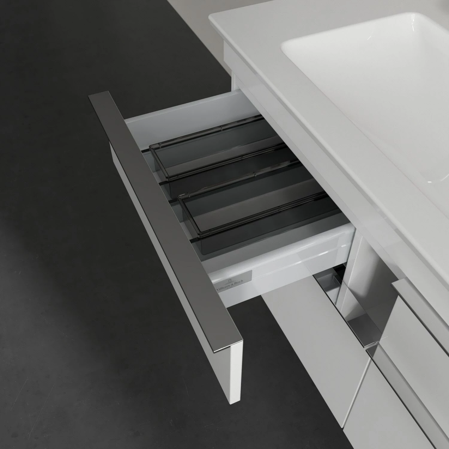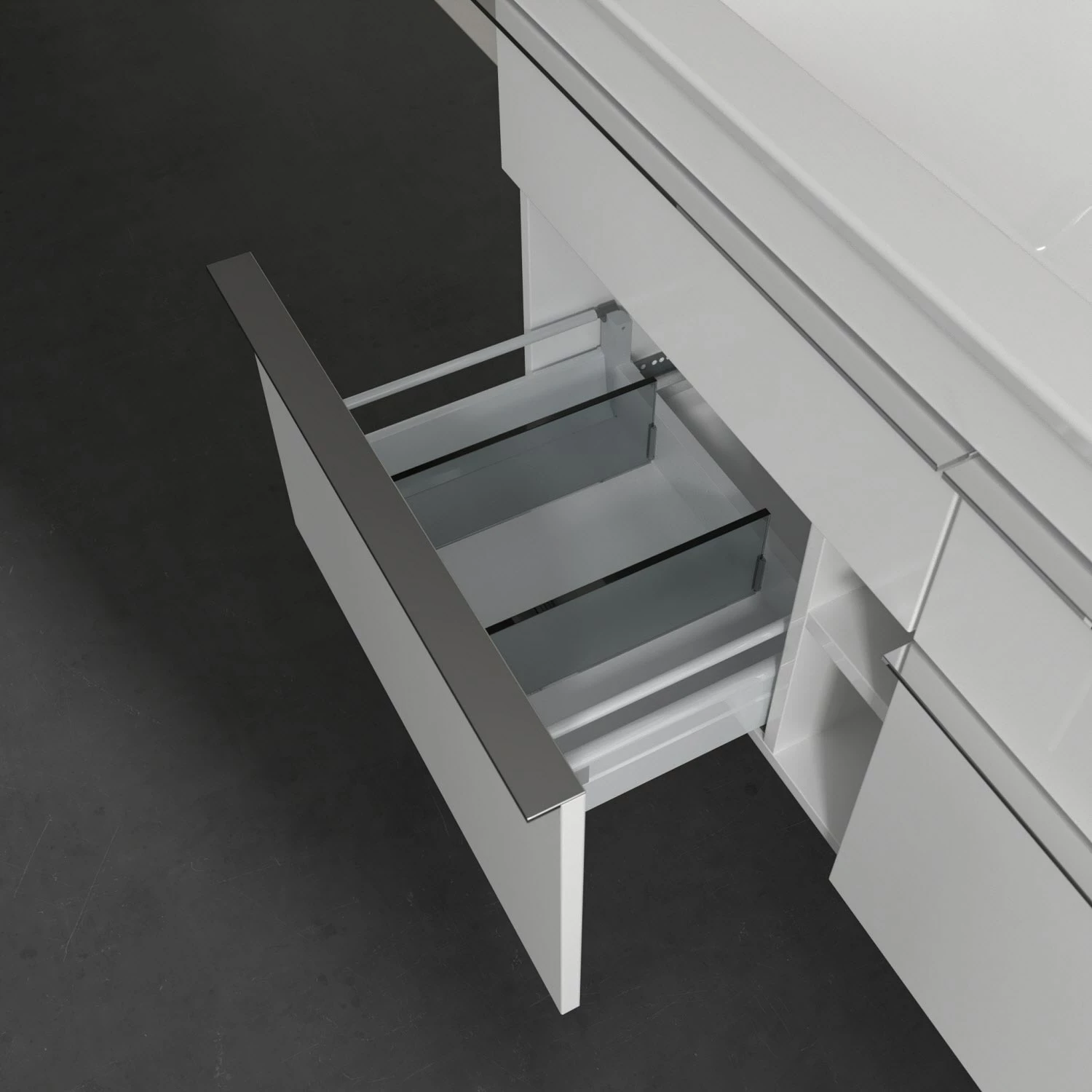 - Die praktische Innenaufteilung von Villeroy & Boch Badmöbeln sorgt für Ordnung und Übersichtlichkeit im Badezimmer. Dank variabler Elemente wie Accessory Boxen unterschiedlicher Größen oder verstellbarer Glasabtrennungen finden sich häufig genutzte Badutensilien direkt auf den ersten Blick.