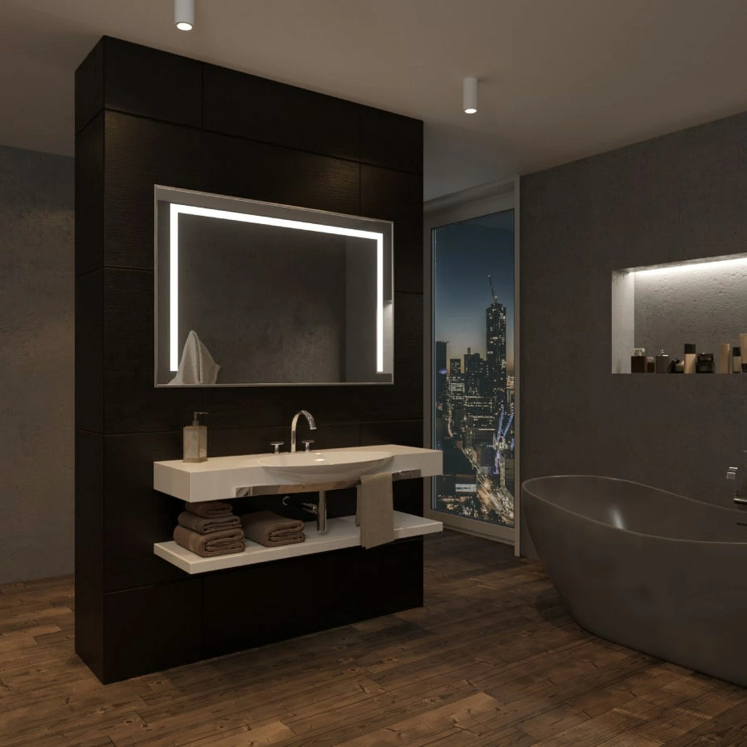 - Ausführung: Einbau – Dank des Einbaurahmens werden sie flächenbündig in die Wand eingelassen und fügen sich perfekt in moderne Badumgebungen ein. So wirken sie fast unsichtbar und sind ein echtes Design-Highlight. Hier ist allerdings keine Varianten oder zusätzliche Beleuchtung wählbar.
